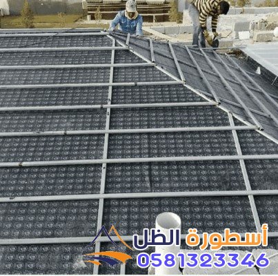 نقوم بتركيب هيكل جمالون بشكل قوي وصلب وبأعمدة التيوب .